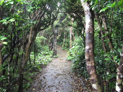 ![]() ジャングルにでも入ったかのような遊歩道。 木々が密集する中を歩く!傘が邪魔で仕方ない(泣) |