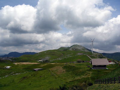 ![]() 雲が広がって風も強い!周辺を散策したり展望台から 四国カルストを堪能!放牧された牛がのどかさを増長。 |