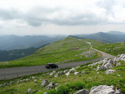 | 今日は朝からずっと緑に包まれた感じ! 面河渓を後にして、R494を少し走り愛媛r212を経由してR33へ。この辺りの面河川の岩の感じがよくて、車窓から 身を乗り出して眺めたりした。 R33を南下してすぐにR440へ進路をとる。ループ橋のような感じでぐるっと回ってトンネル突入! R440は何ケ所か工事区間があったり、路肩が弱く規制があったりして気を張りながら走行。地芳峠区間は上りに 狭路も相まってさすがに疲れた。 そして地芳峠からr383を走り、日本三大カルストのひとつ四国カルストへ! |