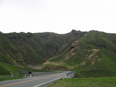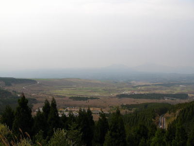 ![]() 牧ノ戸峠を越えて現れる絶景!駐車帯が欲しぃ〜。 |