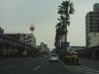 ![]() なんとか日没まで降らないでくれよ〜という願いも 空しく、宮崎市街地手前辺りからポツポツと雨が(泣) 南国ムード漂う宮崎市街のヤシの木も寂しそう!? |