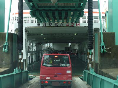 ![]() 2便見送ったけど、GWということで増便していたのか? (通常の12時台は15分置き・・・30分も待ってないしね。) フェリーに乗る瞬間はいつもワクワクするね〜! |