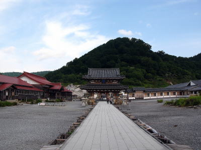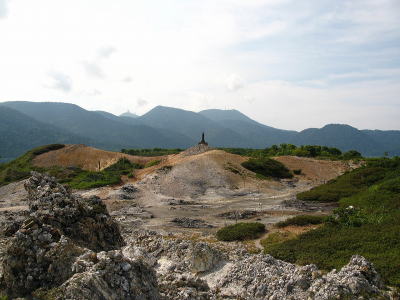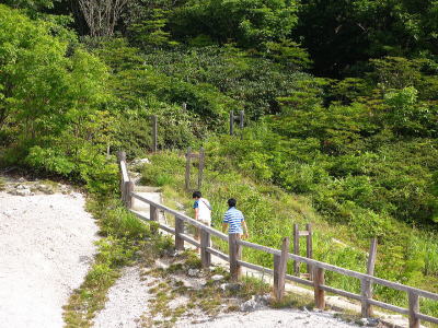 | 程なくしてディドが「トイレに行きたい。」と言うので、どうしようか考えていたらイイタイミングでトイレ発見! 海がすぐ傍のトイレだった。その海を見ながらみんなで歯磨き!なかなか無いシチュエーションに歯ブラシを 持つ手も力が入った。段々と暑くなってきたけど地元に比べれば全然なので爽快な歯磨きだった! 気を取り直してR279を走行。交通量も少ないので快適にかっ飛ばした!途中にある峠ではちょっとタイヤを 鳴らしながら・・・後部座席のディドからブーイングを浴びたけど(汗) そして、むつ市大畑からr4へ。狭路になった辺りで前の車に追いついたけど、すぐに捌けたのでその後は独走! 薬研温泉ってここだったのかぁ。なんて思いながらクネクネ坂路へ。 運転に集中しながらも、ぽくをとB’zを熱唱!テンションはこの時点で最高潮!!ハンドルを軽快に捌きながら 山道を走った。 下りに入り、宇曽利山湖が見えてきたので恐山が近いのを確信。一気に下って硫黄で変色した正津川を恐山橋で 渡って8時半前、霊山恐山に到着! |