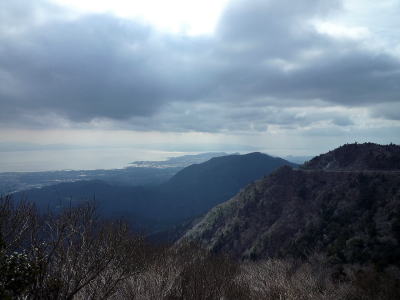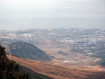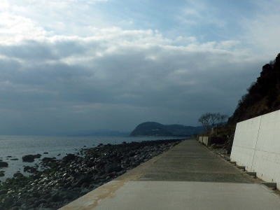 ![]() いま走ってきた道とフェリーで渡った島原湾。 |