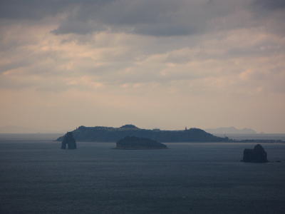 ![]() 島原半島と雲仙普賢岳 フェリーは今日2度目なので少しのんびり休息。 季節柄か今日はさすがにイルカは見られず・・・。 |