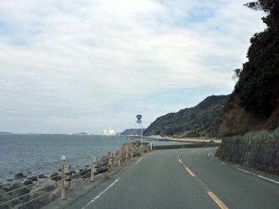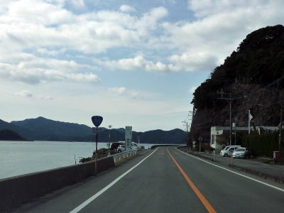 ![]() 再び単独になったR389。穏やかな羊角湾を走る。 |