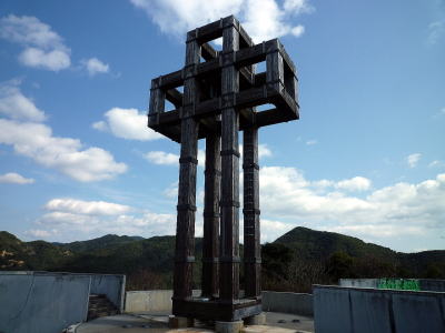 ![]() 展望台にあったドデカイ十字架!倒壊の恐れがある とかでバリケードで仕切られていた。工事中の模様。 |