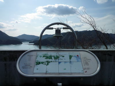 ![]() 南側には鐘があった。羊角湾と天草河浦。 |