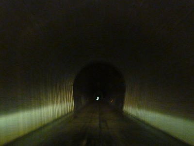 ![]() 照明はなく真っ暗だけど出口の光が見える。 |
