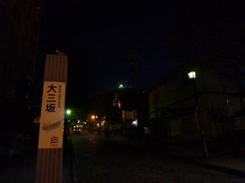 | 函館山の麓、西部地区にある20箇所の坂道のひとつ大三坂通。 鉄平石の石畳、ガス灯風の照明、四季折々で変化する街路樹で 構成され、エキゾチックな雰囲気を創り、沿道の街並みと調和し 魅力あふれる坂道となっている。異国文化の漂った情緒満載! 函館駅隣接のホテルから歩いて大三坂通に向かったけど、結構 距離があって疲れた(汗)道碑は思いの外すんなり見つかった のでよかったけど!昼夜問わず雰囲気が良い坂のある風景。 函館に来たら、ゆっくりと巡ってみたい場所のひとつである。 |