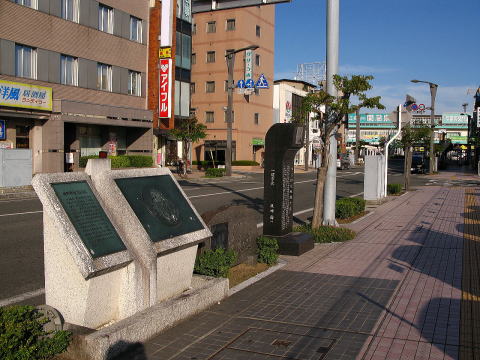 | 芭蕉の『奥の細道』と関連があるとなればそれなりの雰囲気が と思いきや、いまいちつかみどころがわからず! 顕彰プレートは一関駅前で発見したが、他の場所にも・・・ |