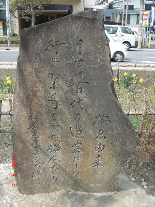 | 旧国道4号の草加松原の松並木は江戸時代は日光街道の宿場町で 現在は河岸沿いに遊歩道になっていて明媚な百代橋も架っている。 簡単に見つかるかと思っていた顕彰プレートは百代橋付近かと 思っていたが、川が曲がっている辺りに威厳を放っていた。 |