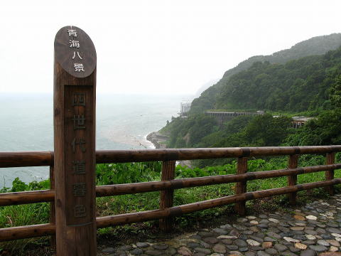 | 親不知・子不知(おやしらず・こしらず)という地名もさることながら 地形も断崖絶壁と天下の難所といわれたことだけはある。 ここを現在は国道8号、北陸自動車道が通っているのだから 尚更驚くばかりだ。四世代道景色が誇らしい! 国道8号を富山に向かって走っていたが通り過ぎてしまい戻って やっとの思いで顕彰プレートを見つけた。やはり難所だ(泣) |