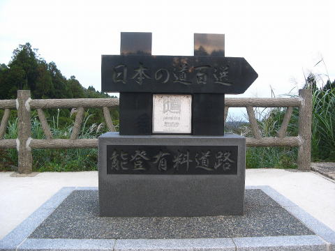 | 見渡す限りの日本海を望む能登有料道路は一般有料道路の中では 日本一の延長。途中に有名な千里浜なぎさドライブウェイもある! とにかく長いので顕彰プレート探しも苦労するだろうなあと 思ったら案の定、何往復もするはめにならなかっただけでも 救いか(泣)能登半島からの帰りのパーキングは要注意!! |
