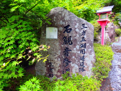 | 名勝三方五湖を周遊するレイクサイドウェイ!! 光り輝く湖に散策やサイクリング、ドライブを楽しむ人が溢れる。 有料道路の“レインボーライン”に顕彰プレートがあると思い 時間を掛けるもない!日が暮れて諦めて県道に下りてきた 湖畔に潜んでいた。イライラと見つけた嬉しさがやめられない! 情報から道碑がもうひとつあるということで再訪。タイトルと少し 違う気もするが三方五湖周遊といえば強ち間違いでもないか!? 国道27号から三方石観世音の参道がまさに選定道!華やかな 三方五湖とはまた違った雰囲気を醸し出す!三方五湖も見渡せる。 |