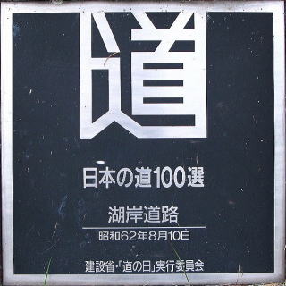 | 琵琶湖岸を走る産業道路として位置付けされている。 近江大橋が琵琶湖に架かり交通の円滑を図っている。 近江大橋を渡ろうと右折した瞬間、中央分離帯に顕彰プレートを 発見!即座に止まることも出来ず結局往復し通行料を支払う はめに(泣)お金に代えられない日本の道100選!! |