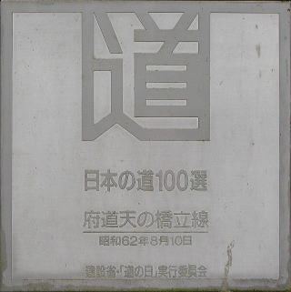 | 日本三景のひとつ天橋立。龍が昇る様は神秘。 数々の名所が一層の優美さを醸し出している。 この地で顕彰プレートを発見し日本の道100選を巡る旅を始めたと いっても過言ではない!!思い出の天橋立、多くを語らず。 |