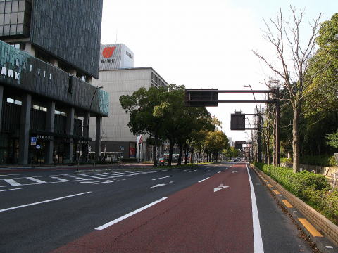 | 高松市中心部を南北に縦貫する香川県随一の幹線道路。 沿道は成木が林立し、都会の暮らしに季節感を演出している。 中央公園の駐車場に車を止め、懸賞プレート探しを始め北に進路を 訪ったら交差点角の植木の中に道碑が・・・苦戦は間違いないと 覚悟していたのでホッとした!運も左右するとは正にこのことか! |