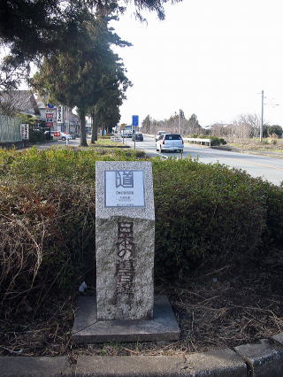 | 樹齢300年を超える杉の老大木が林立し、その中を鉄道と国道が 通り抜ける。古くは豊後街道と称され、肥後と豊後を結ぶ幹線道路。 参勤交代にも利用され、壮大な景観は歴史的な重みを感じさせる。 結構距離があるので注意はしていたのだが如何せん通り過ぎて しまい、やっとの思いで道碑を発見!JR豊肥本線の原水駅に 近い辺り。現在思えばよく見つけられたかなと・・・!? |
